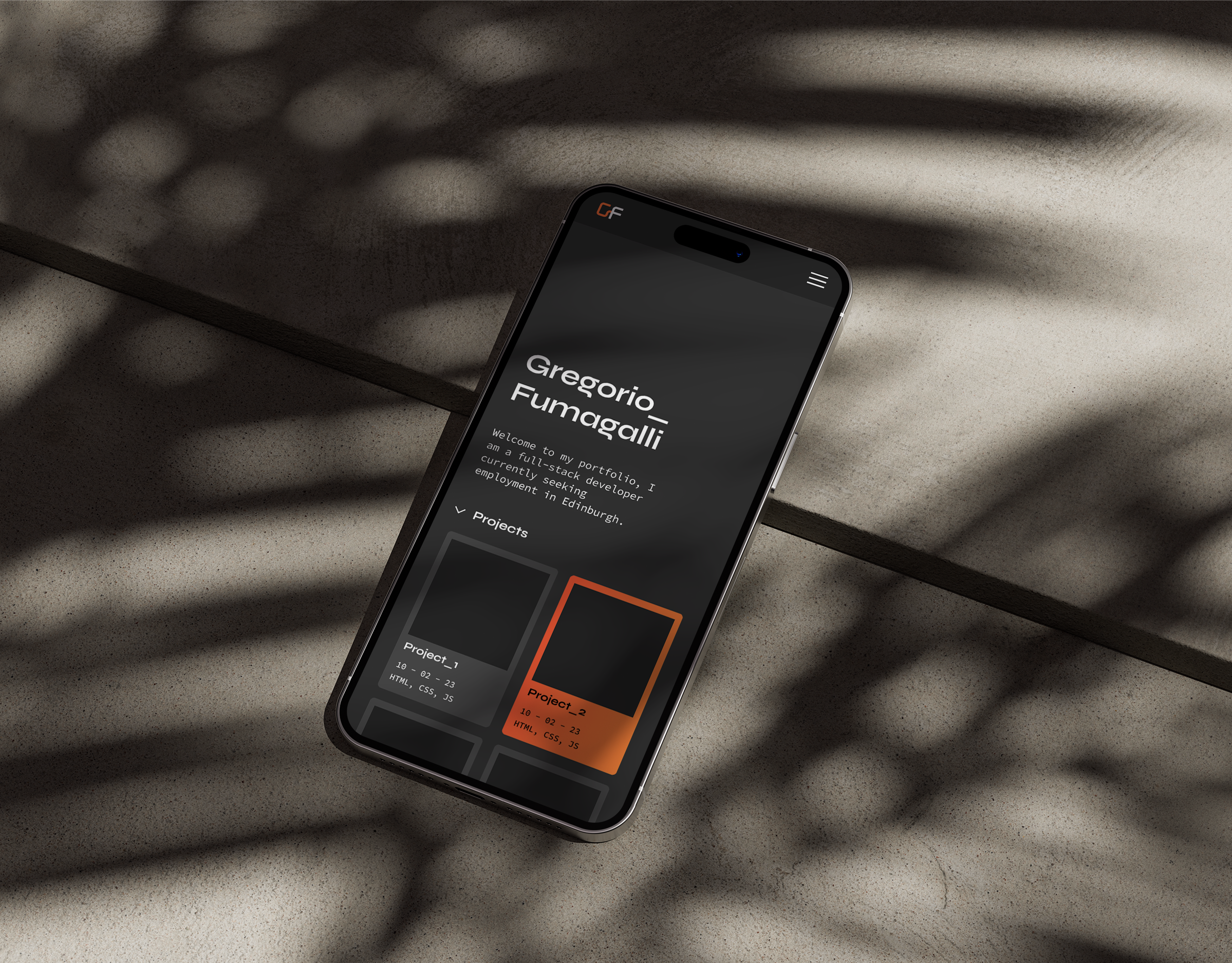 UI design for a developer’s portfolio site, focused on clarity and personal branding.