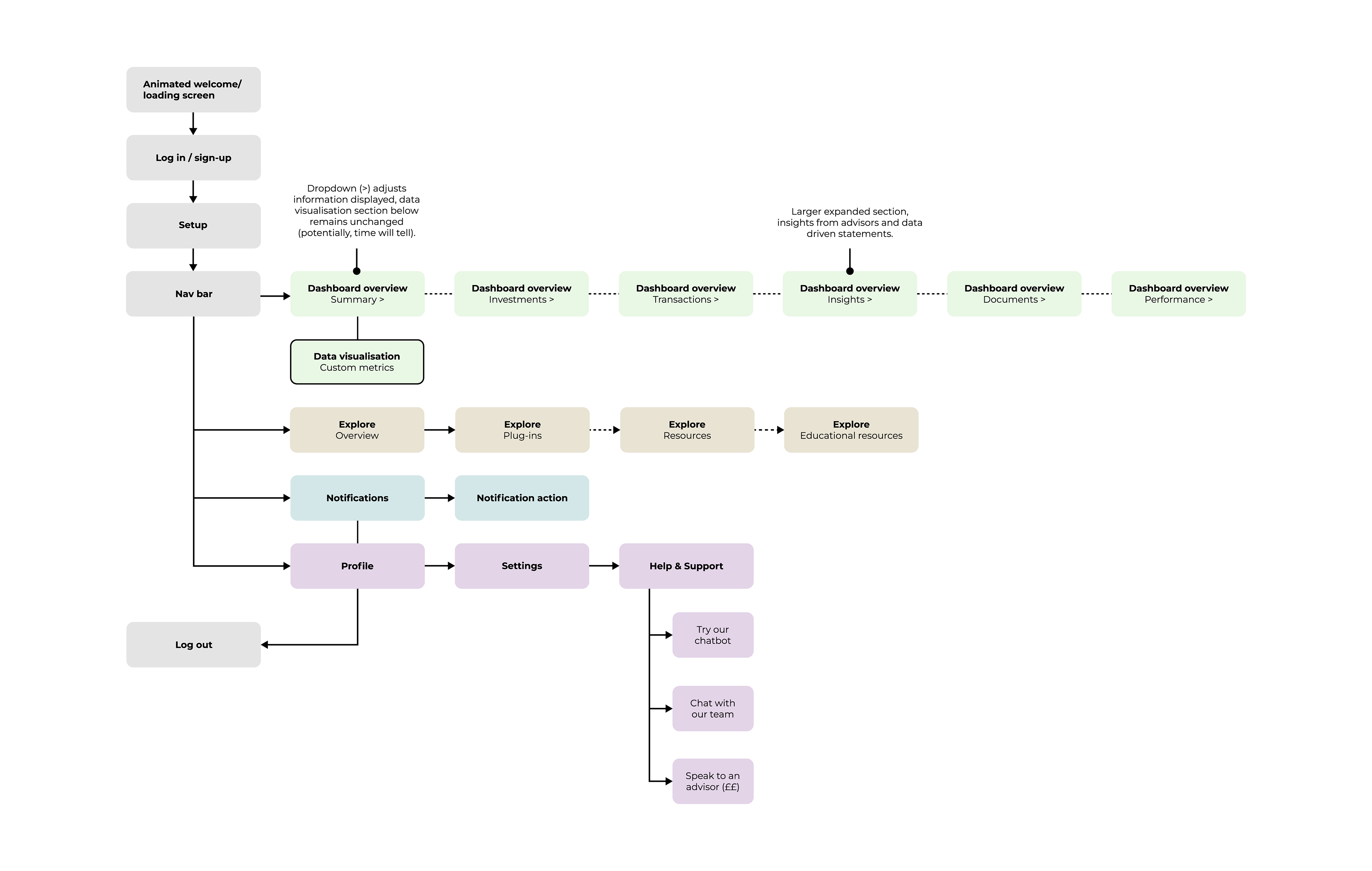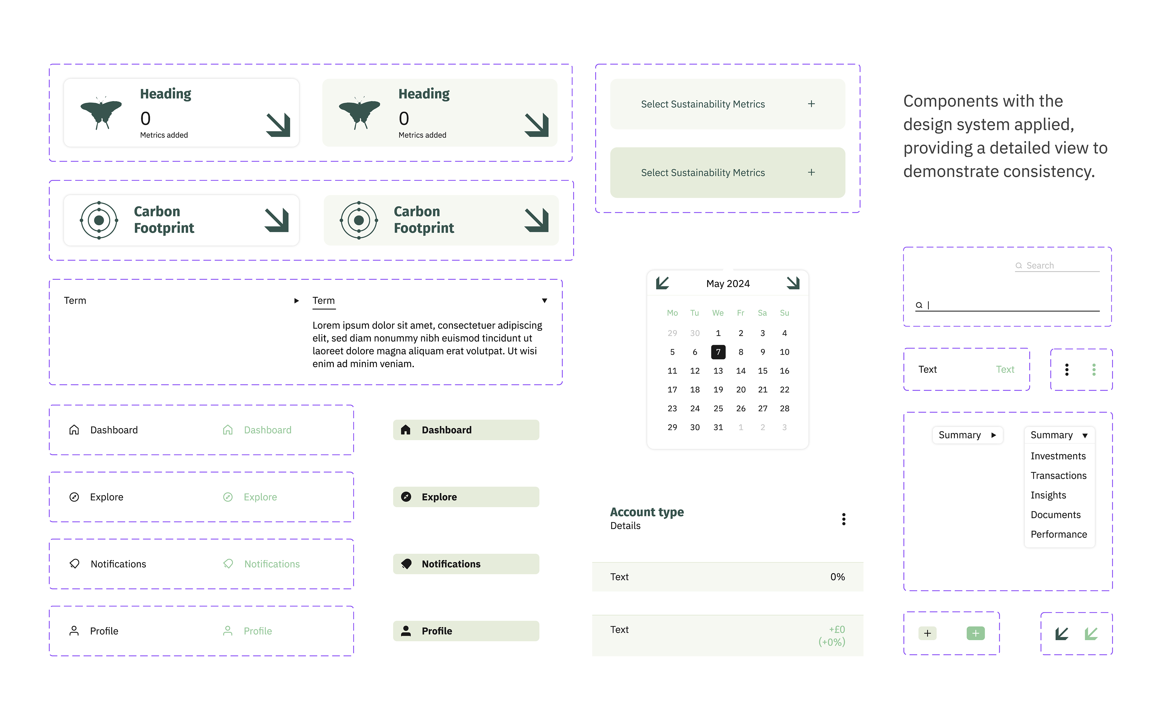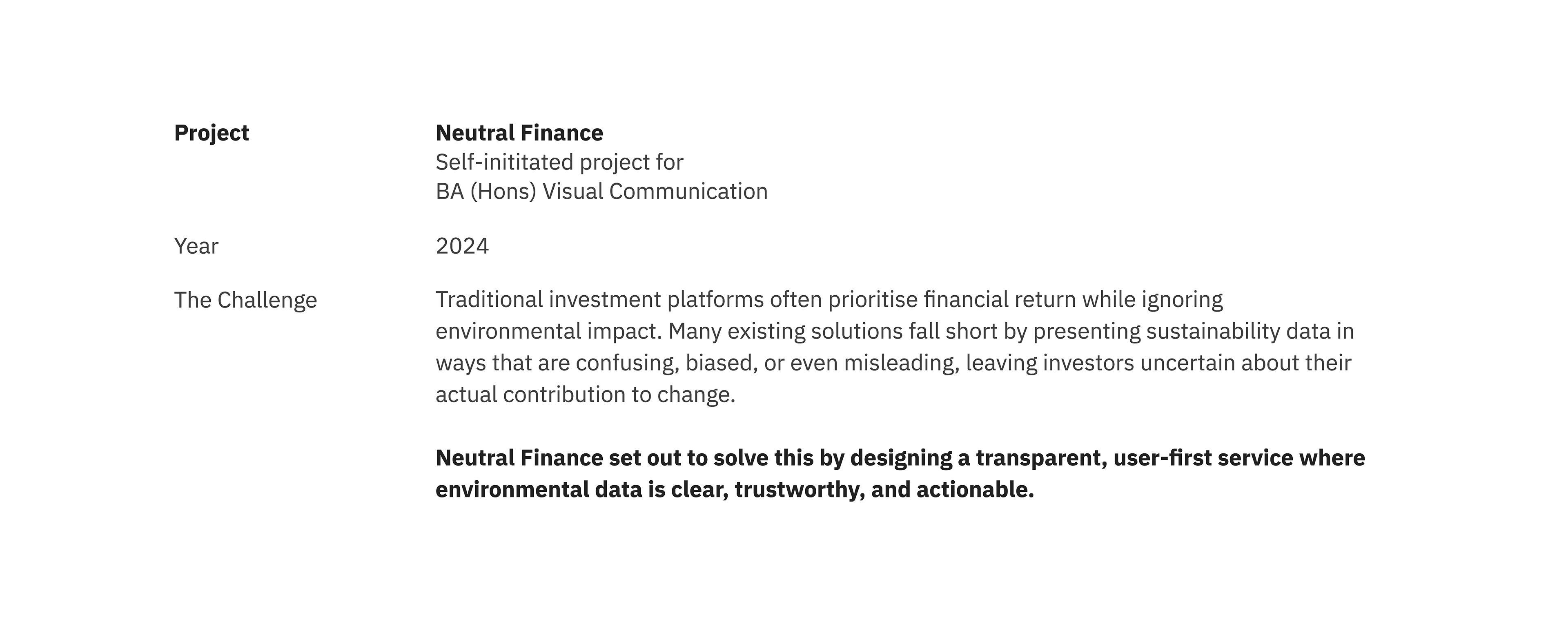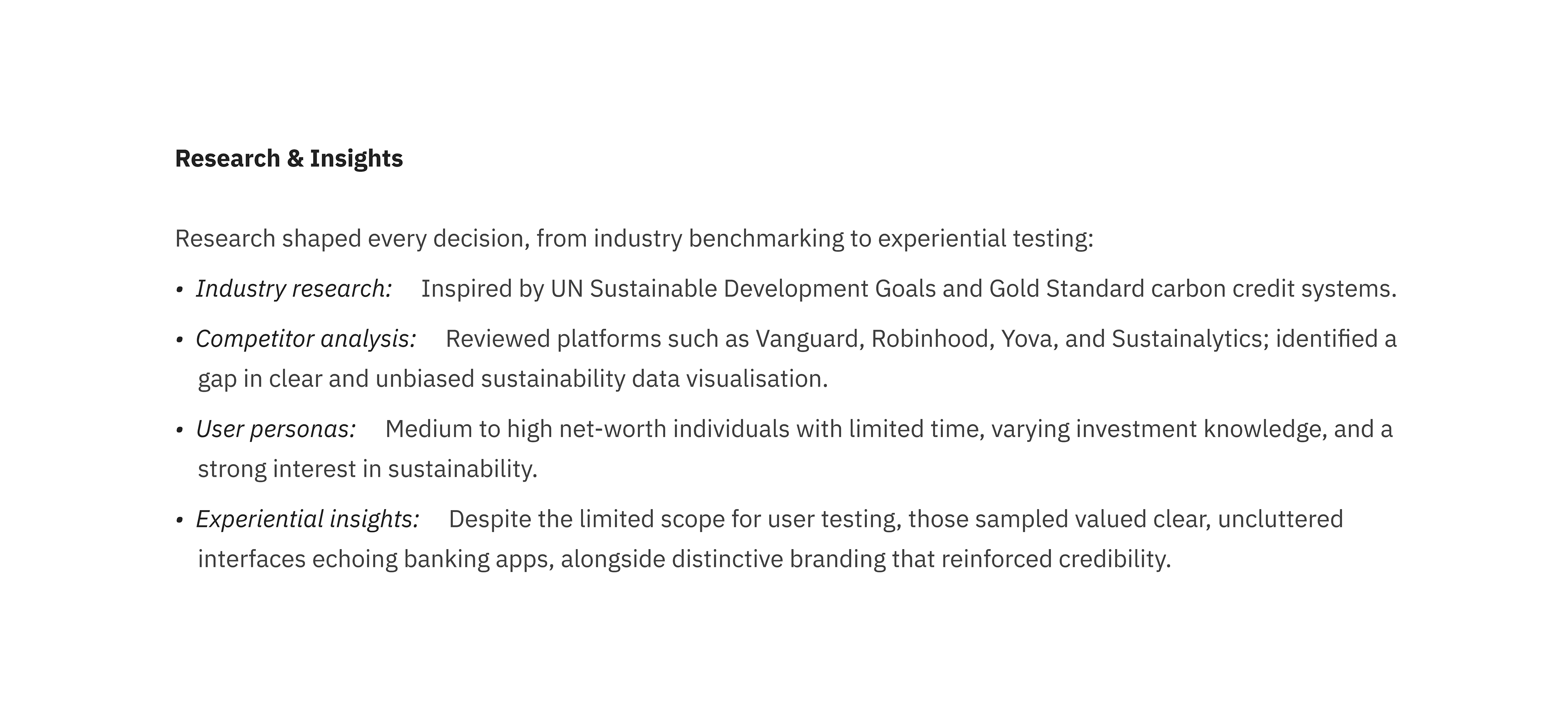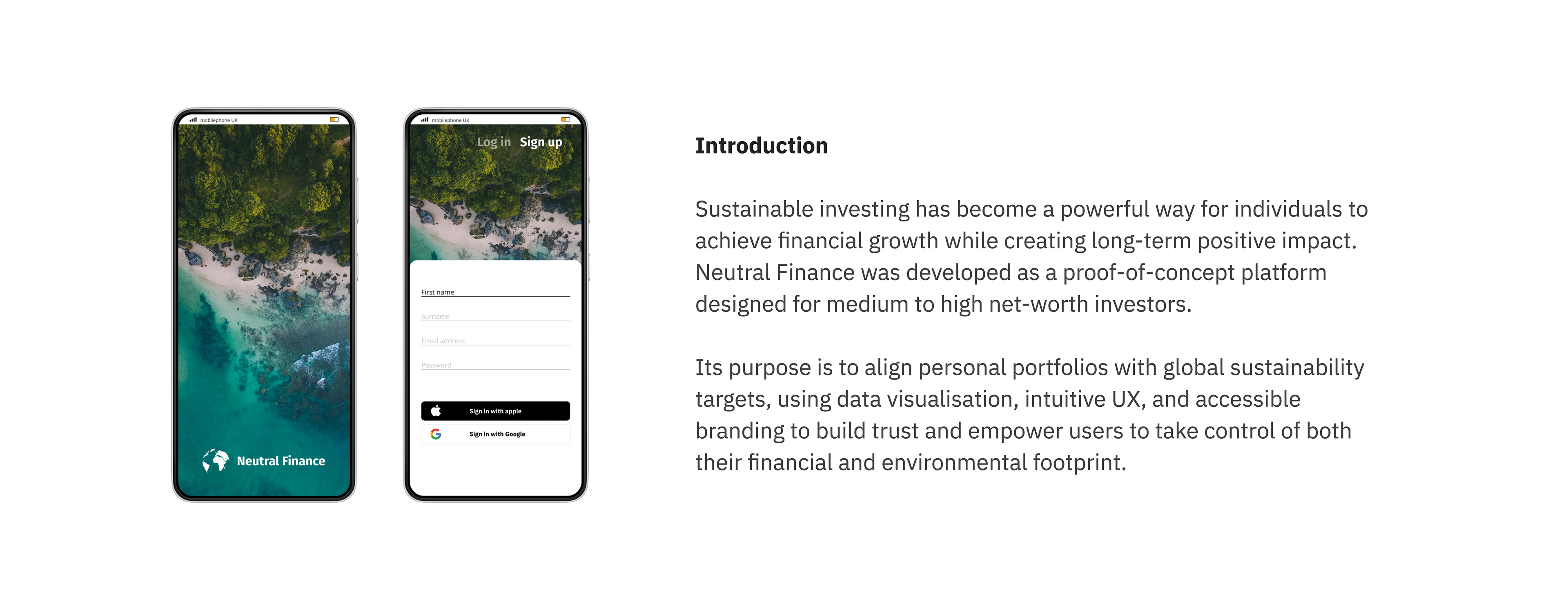 UI prototype for a sustainable investing app that visualises impact and guides greener choices.
